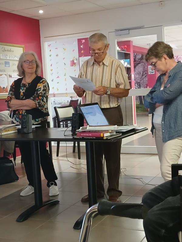 "les vignes et les vignerons", voilà le thème,on ne peut plus d'actualité dans notre région, qui a été abordé par Georgette, Lucien et et Marie-Thérèse lors du café lecture de cette après-midi ! Des extraits de livres, des poèmes ou encore des citations qui ont mis en valeur le travail de la vigne.
