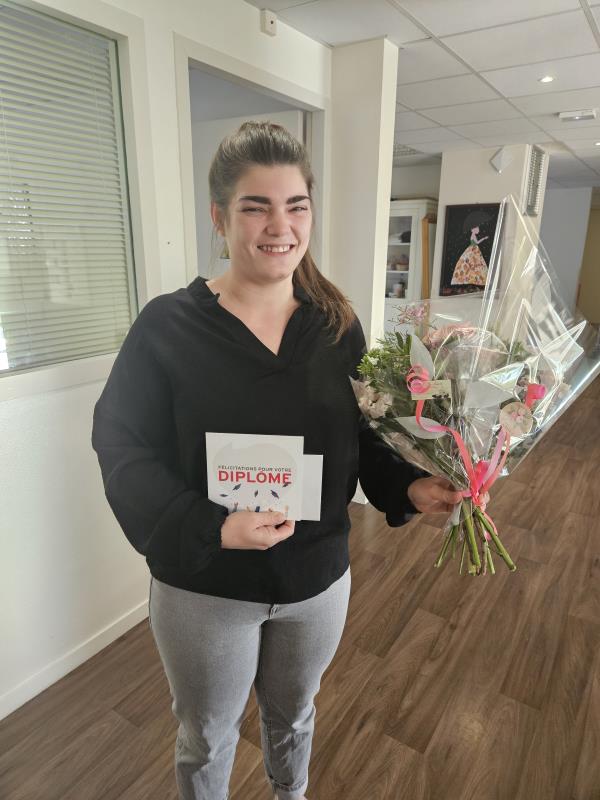 Nous tenons à féliciter chaleureusement Joana pour pour l'obtention de son diplôme d'aide soignante. Votre persévérance et votre dévouement sont une belle source d'inspiration pour l'équipe. Cette réussite est le fruit de votre engagement, de votre sérieux et de votre détermination. Nous sommes très fiers de vous compter parmi notre équipe et vous souhaitons beaucoup d'épanouissement dans la suite de votre carrière
