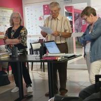 Publiée le 12/09/2025"les vignes et les vignerons", voilà le thème,on ne peut plus d'actualité dans notre région, qui a été abordé par Georgette, Lucien et et Marie-Thérèse lors du café lecture de cette après-midi ! Des extraits de livres, des poèmes ou encore des citations qui ont mis en valeur le [...] Lire la suite