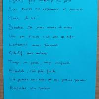 Publiée le 16/10/2025Évidemment, les résidents ont aussi travaillé pour cette rencontre autour de la poésie! Et nous avons lu le poème devant les enfants. Nous avons opté pour un acrostiche qui leur ressemble et qui a été fait dans une ambiance très détendue. Lire la suite